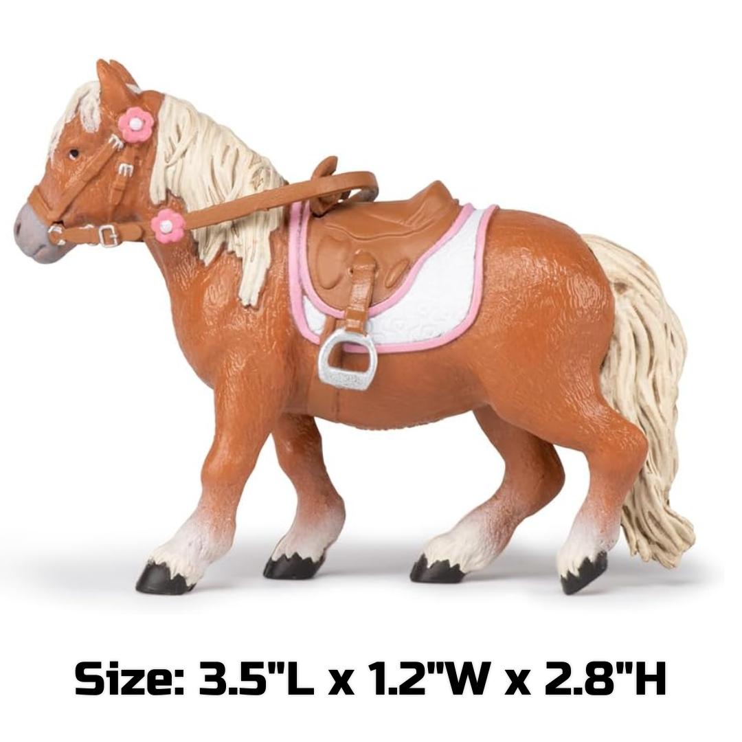 Shetland Pony with Saddle Figure - Hand Painted Collectible Farm Animal Toy Figure - Papo 51559
