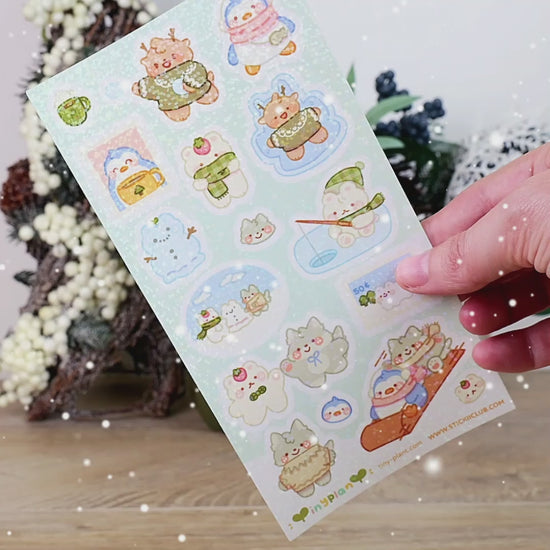 Fun Winter Stickers - Cute Animal Snowy Afternoon Sticker Sheet