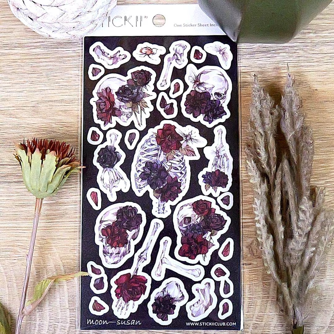 Spooky Blossom Floral Stickers - Skeletons and Flowers Sticker Sheet - Gothic & Halloween