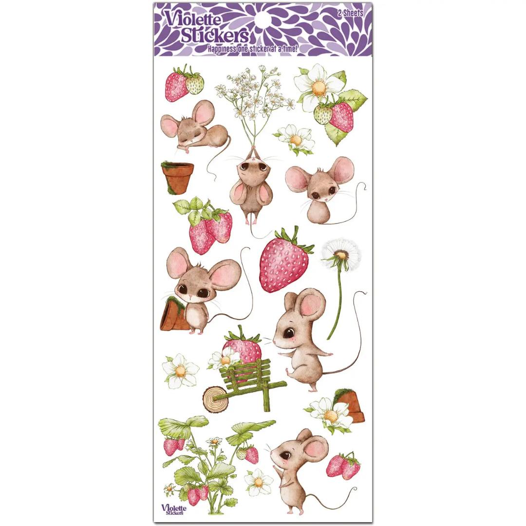 Strawberry Mice Vintage Stickers - 2 Sticker Sheets for Stationary, Scrapbooking, & More