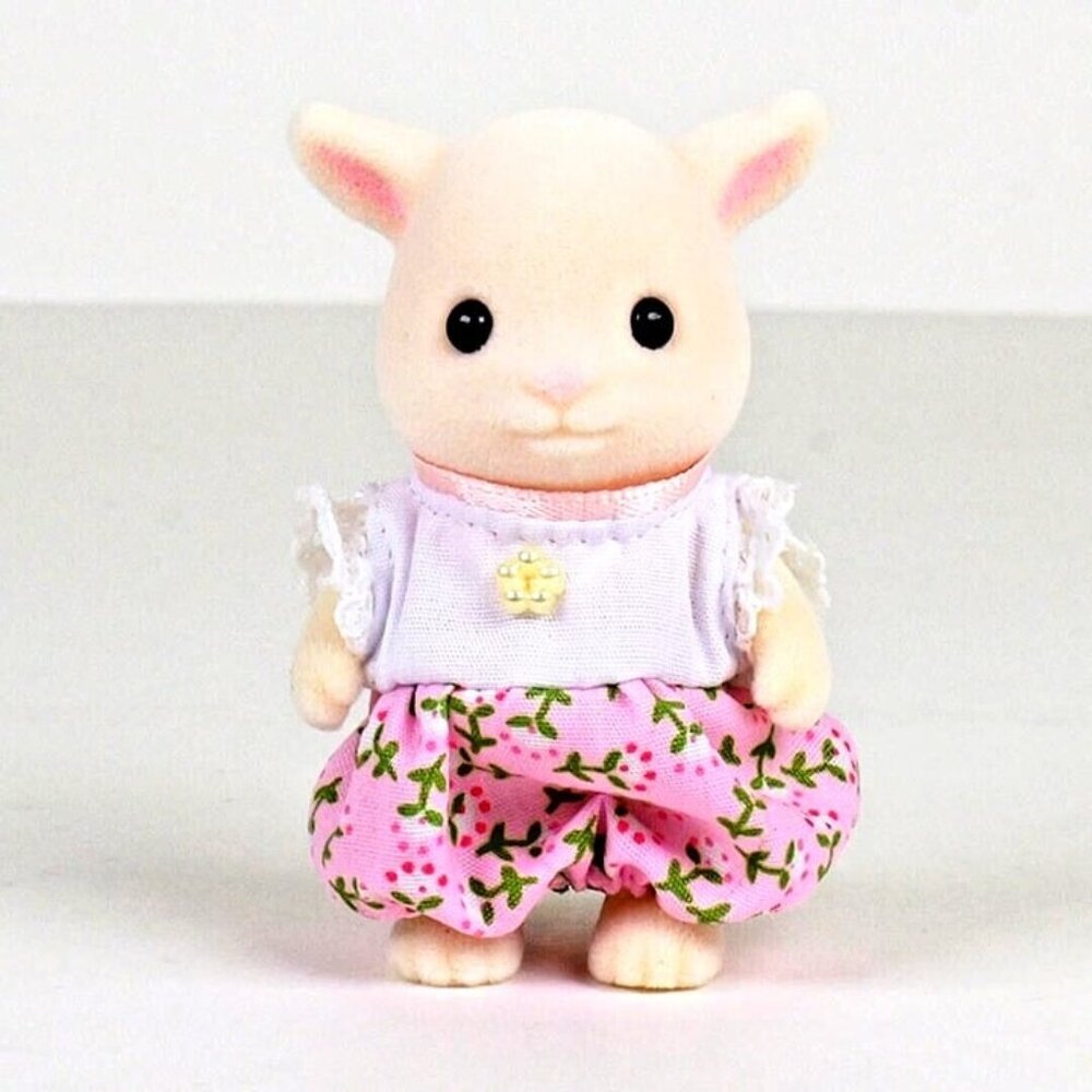 This listing is for a like new, single Calico Critters Goat Sister named Mandy. Mandy measures approximately 2.25" inches tall and is posable. She is wearing a beautiful, removable, fitted dress. She has a small spot of ruffled fur on the back of her head from being in the box.