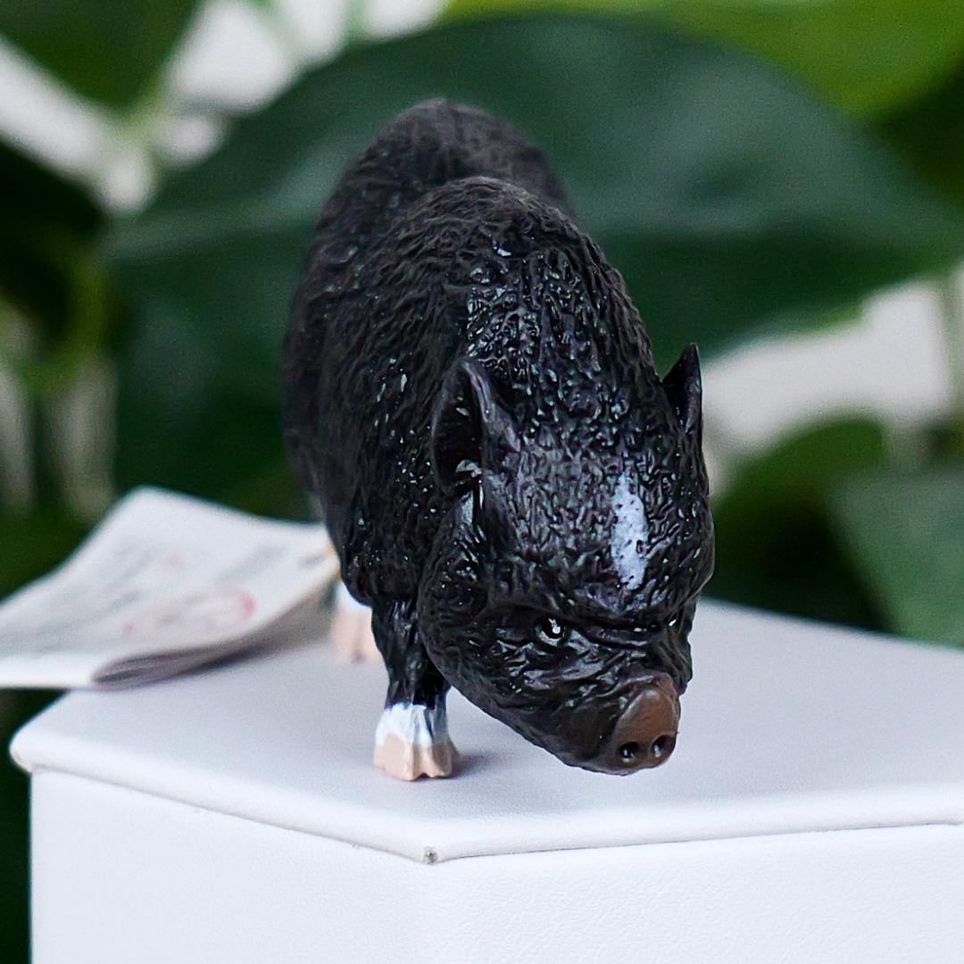 This Vietnamese Pot Bellied Pig Farm Figure is hand painted and highly detailed with a natural color-scheme that replicates the real animal, making the figure extremely realistic looking. For play or display. Due to being hand painted, each animal figure may look slightly different. The measurements are approximately 2.8" L x 1.2" W x 1.7" H.