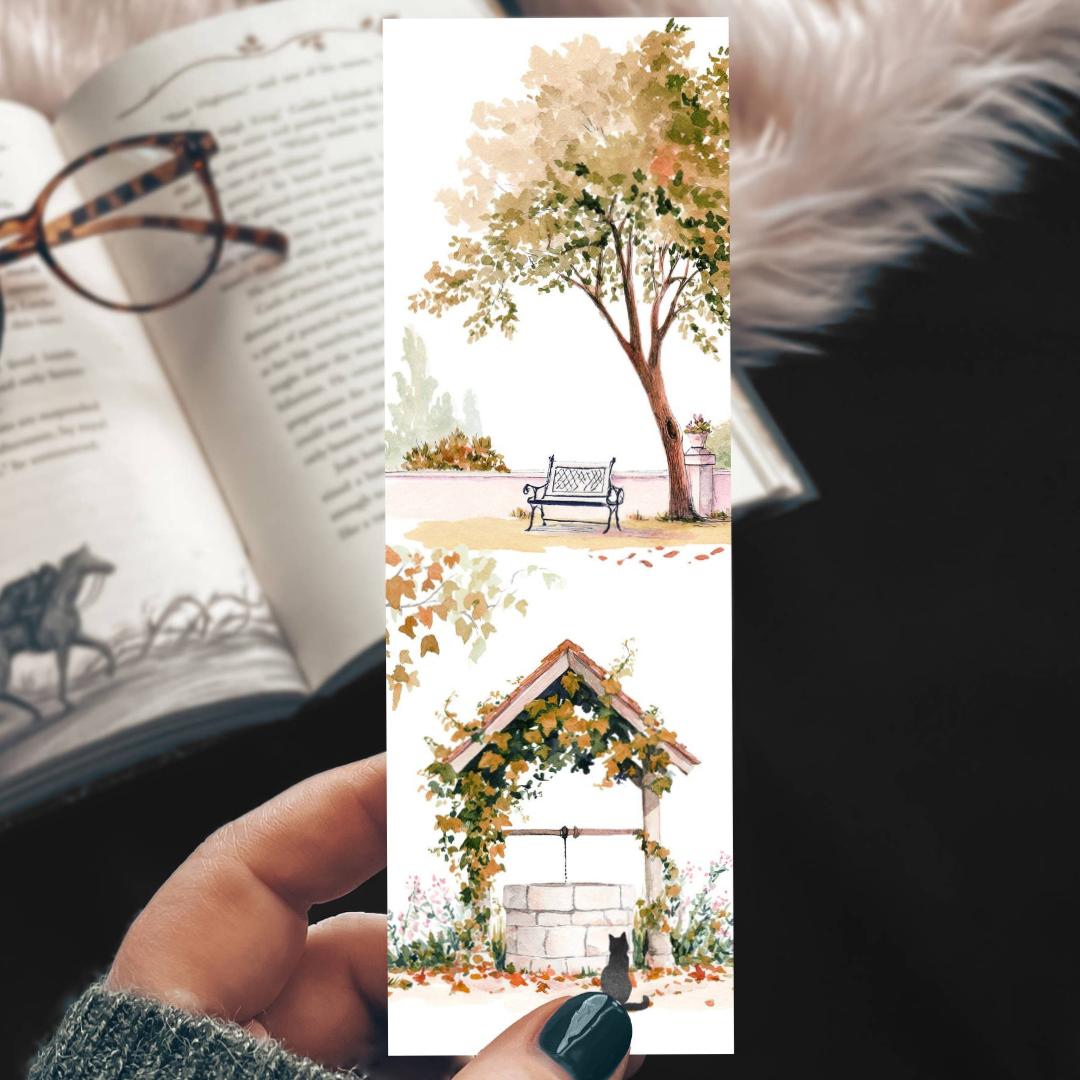 Wishing Well Fall Cardstock Bookmark with Black Cat - Spooky Autumn